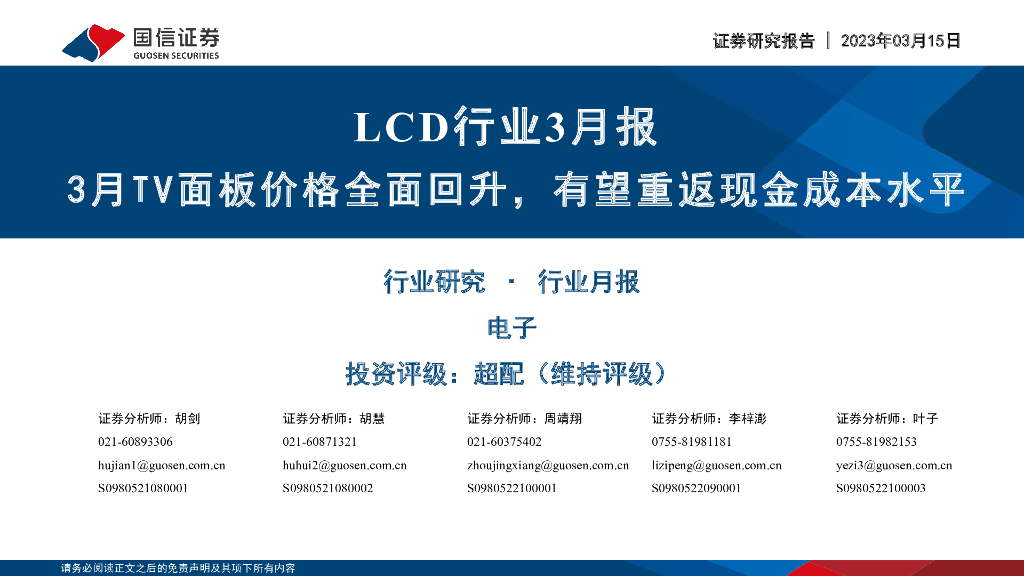 国信证券:LCD行业3月报:3月TV面板价格全面回升,有望重返现金成本水平.pdf
