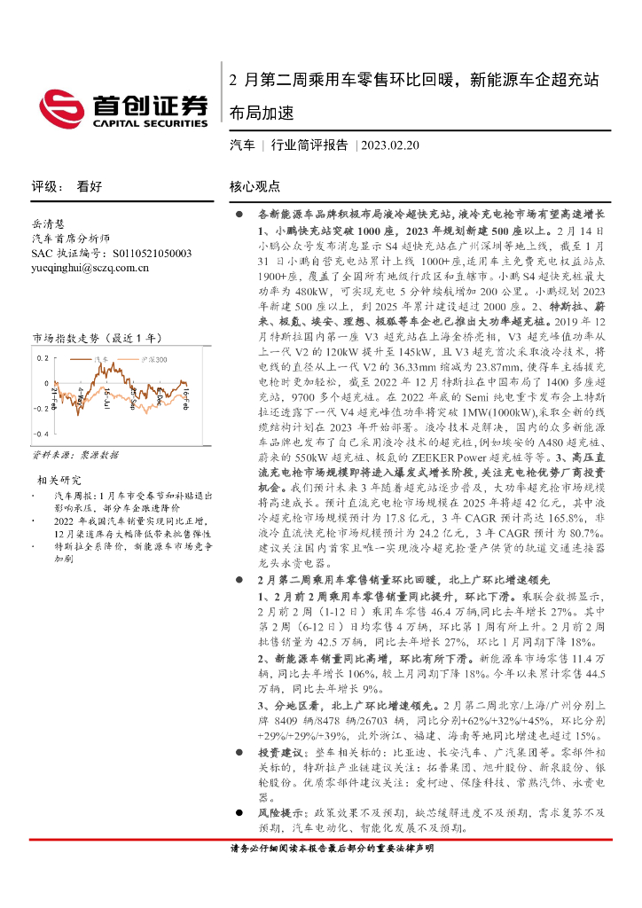 首创证券:汽车行业简评报告:2月第二周乘用车零售环比回暖,新能源车企超充站布局加速.pdf