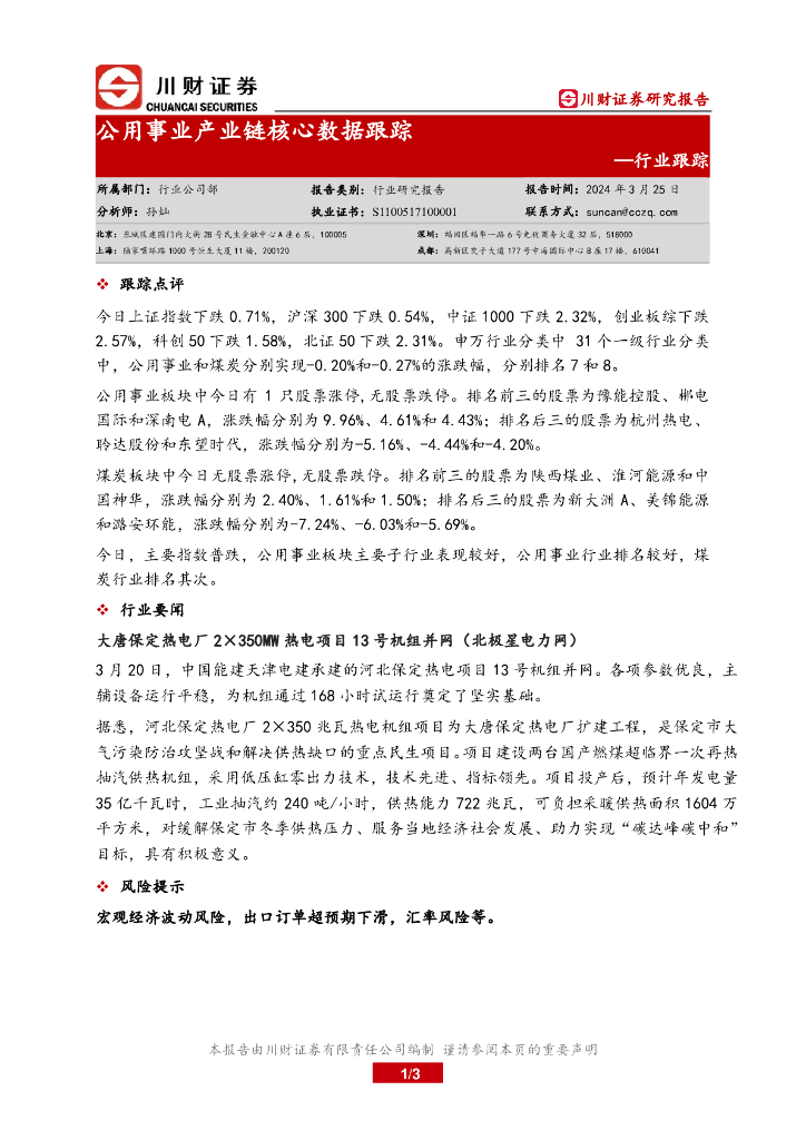 川财证券:行业跟踪:公用事业产业链核心数据跟踪.pdf