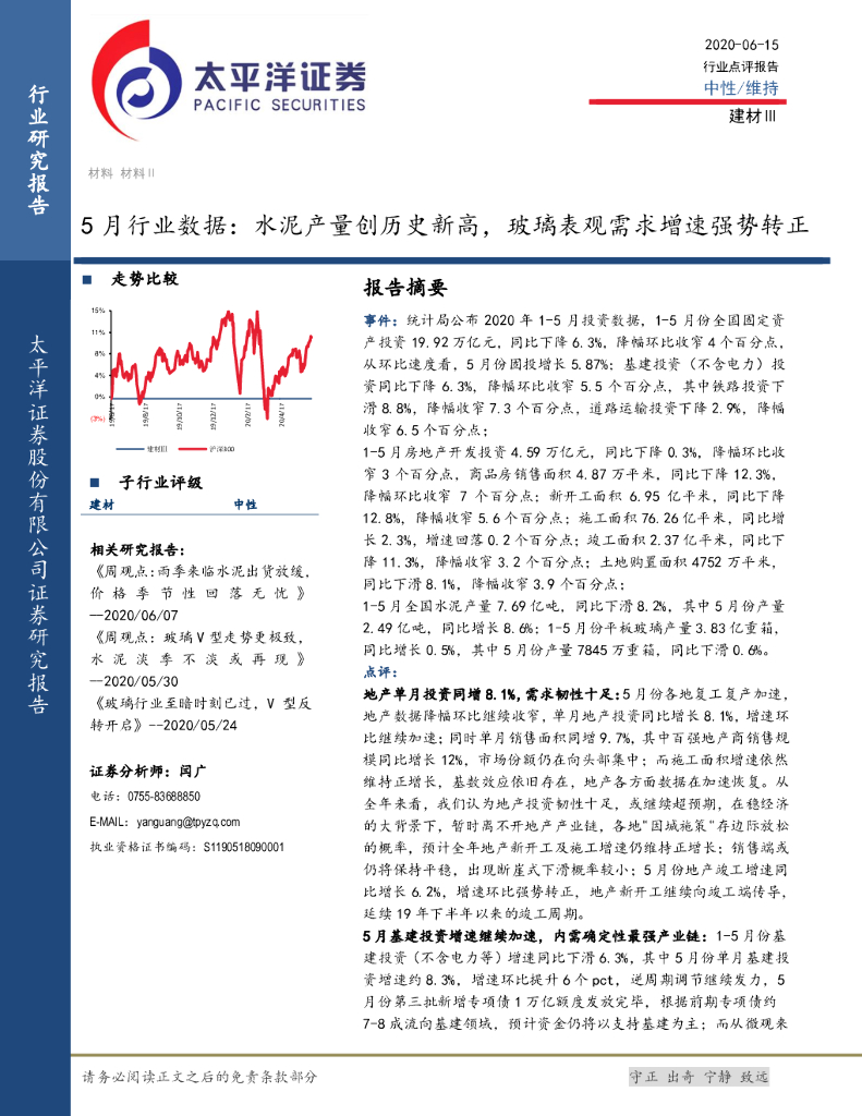 太平洋证券:5月行业数据:水泥产量创历史新高,玻璃表观需求增速强势转正.pdf
