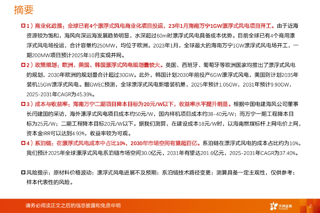 天风证券:机械设备行业深度研究:漂浮式风电:全球规划+投产加速,商业化进展有望加速推进.pdf