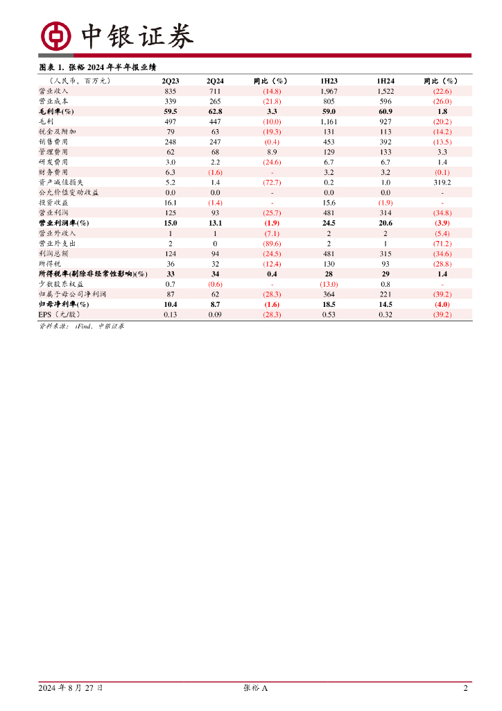 中银证券:张裕A(000869)-上半年业绩承压,静待行业需求好转.pdf