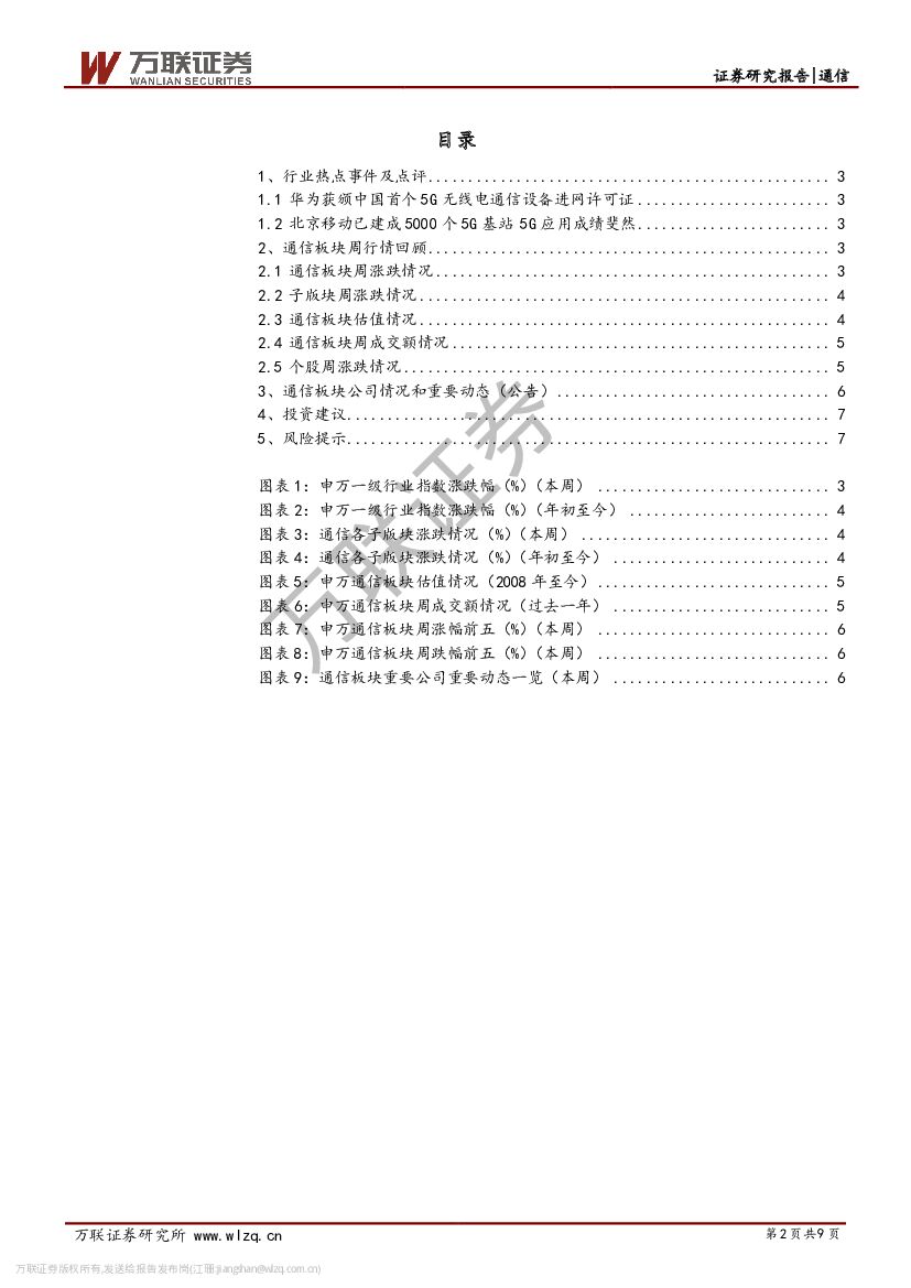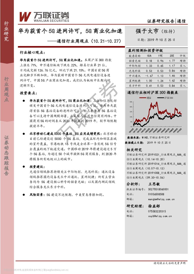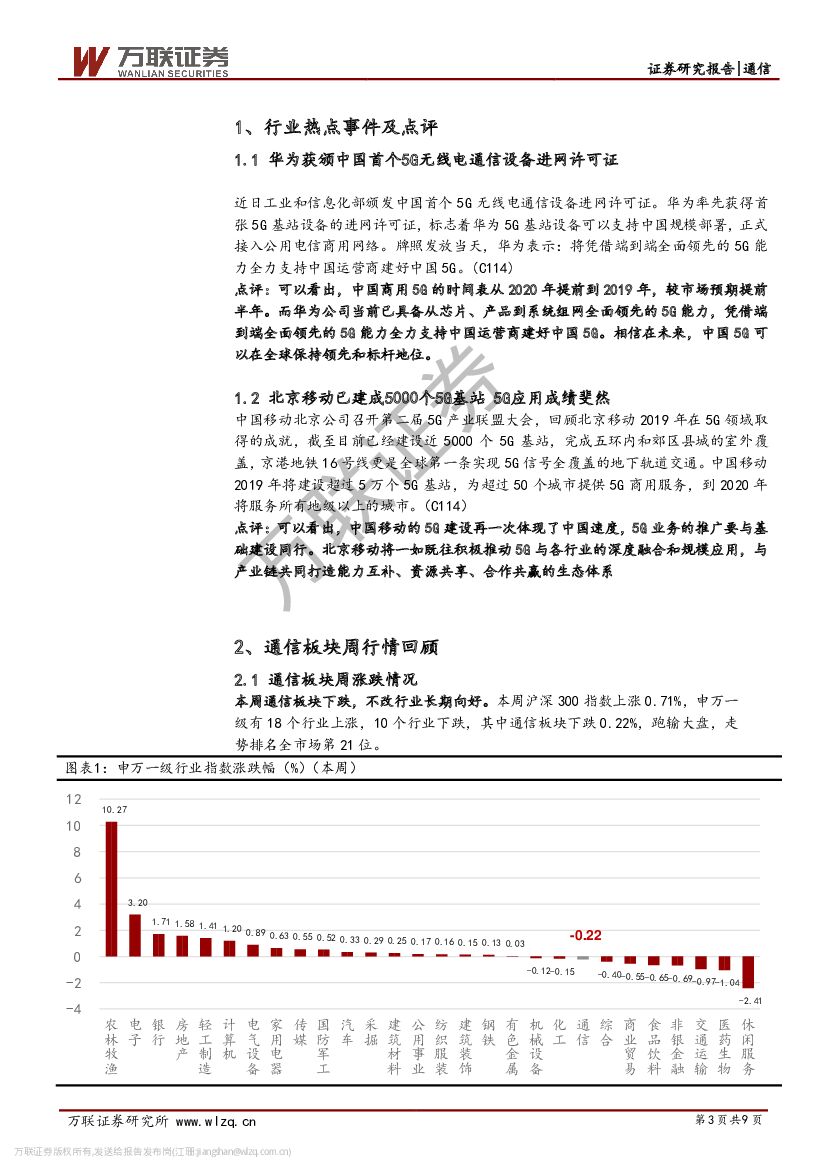 万联证券:通信行业周观点:华为获首个5G进网许可,5G商业化加速.pdf