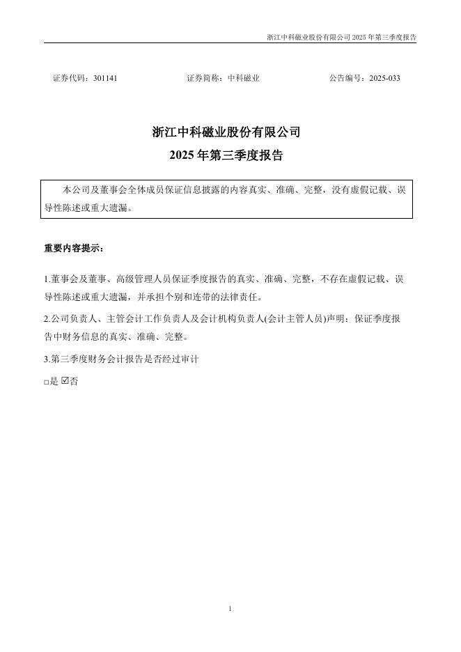 301141-中科磁业:2025年三季度报告.pdf