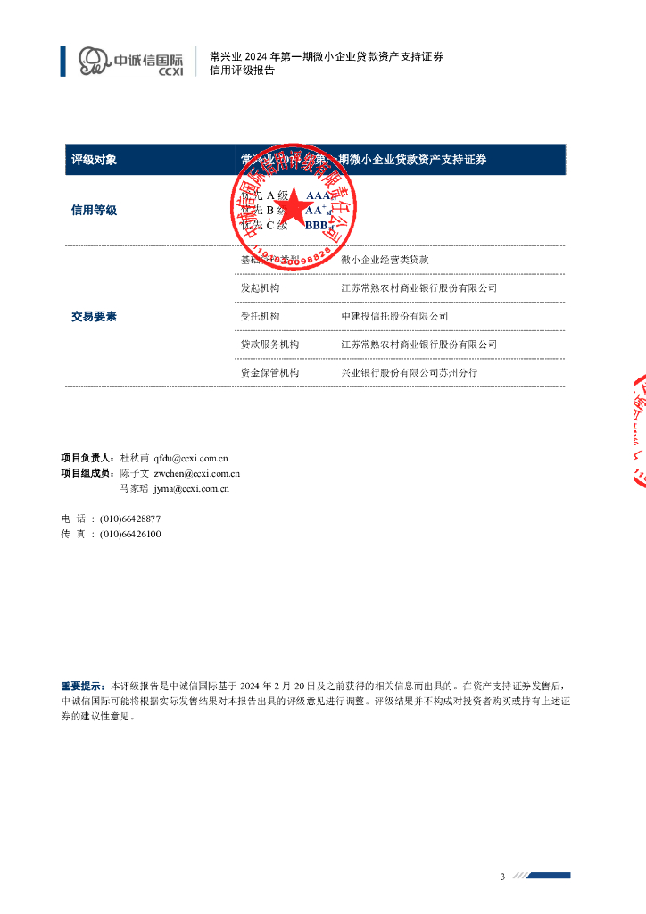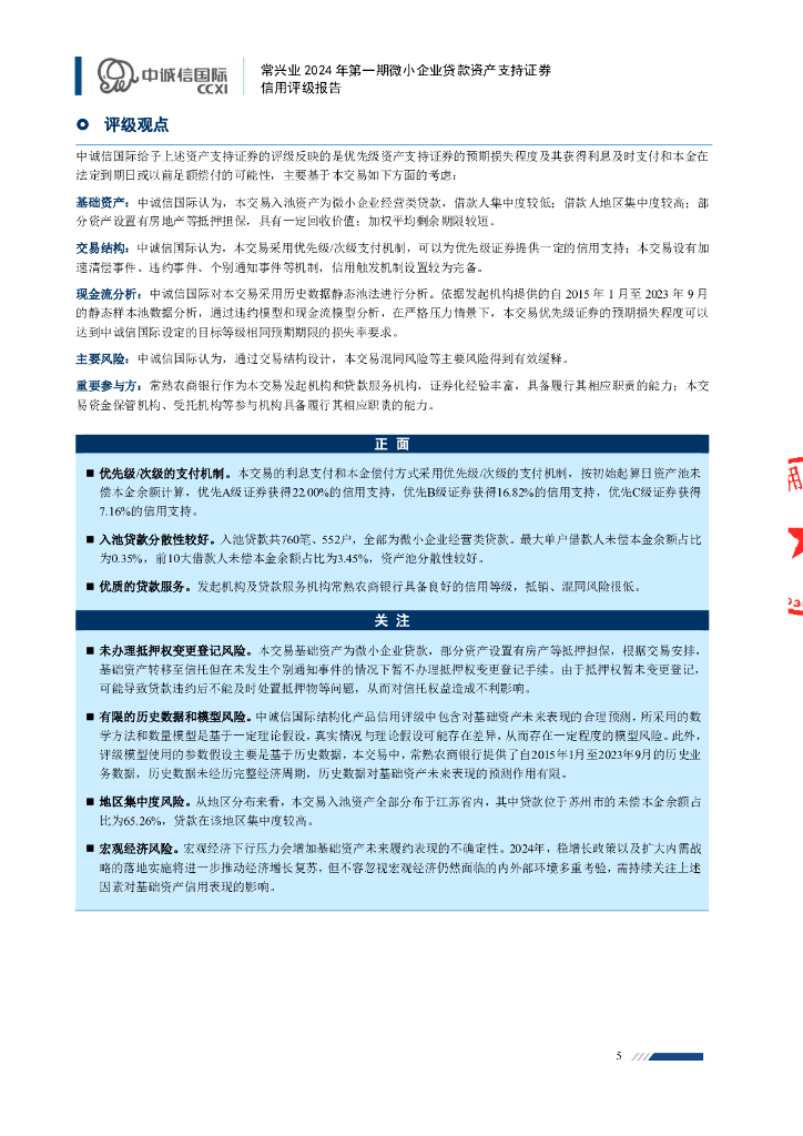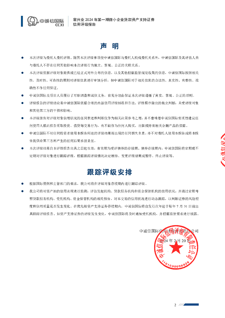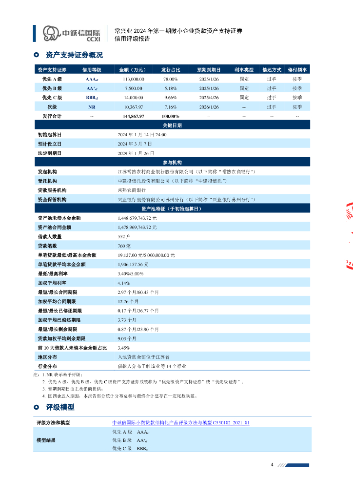 中诚信:常兴业2024年第一期微小企业贷款资产支持证券评级报告及跟踪评级安排-中诚信.pdf