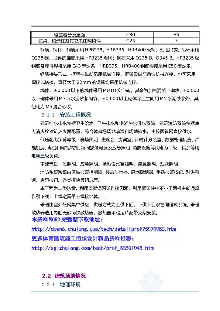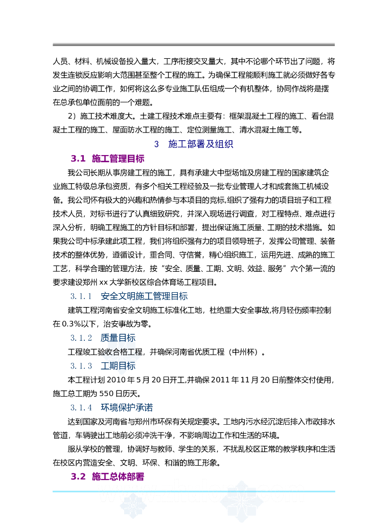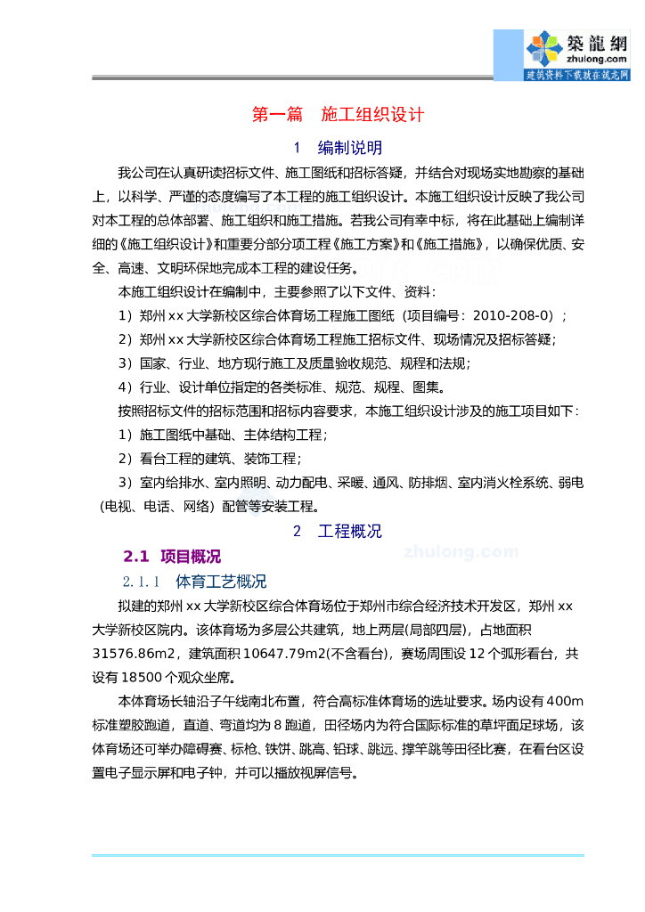 某体育场施工组织设计技术标框架.doc