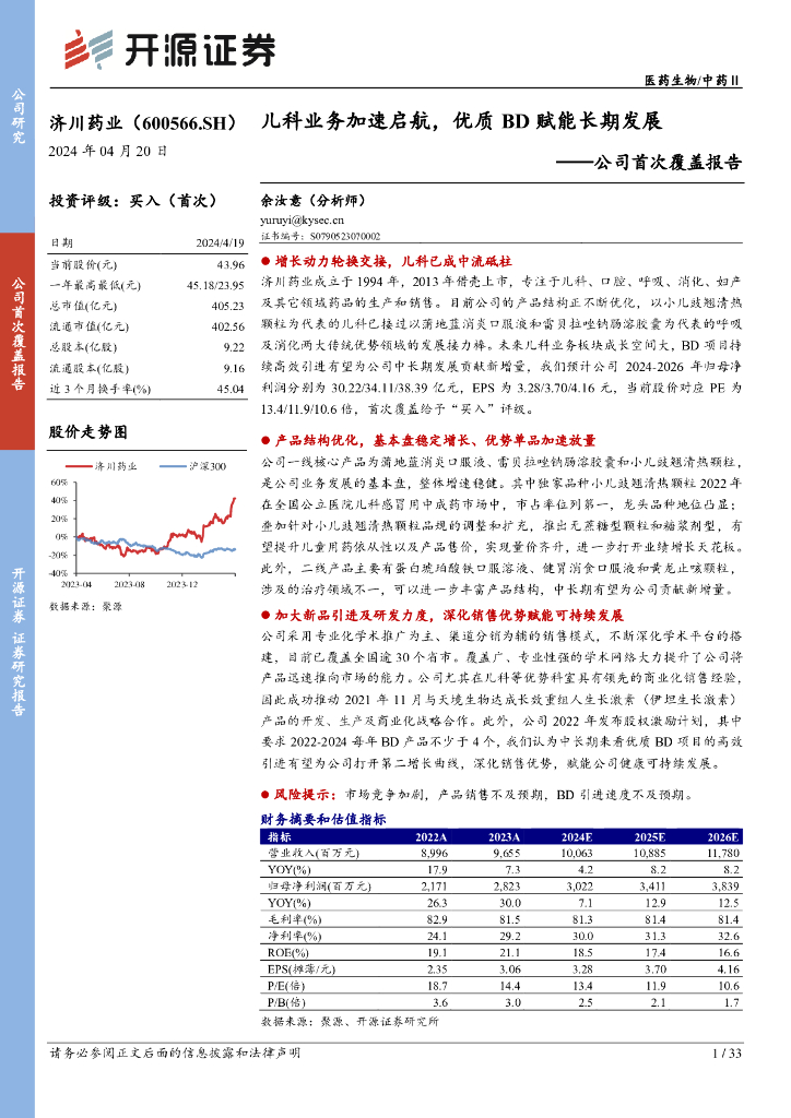 开源证券:济川药业(600566)-公司首次覆盖报告:儿科业务加速启航,优质BD赋能长期发展.pdf