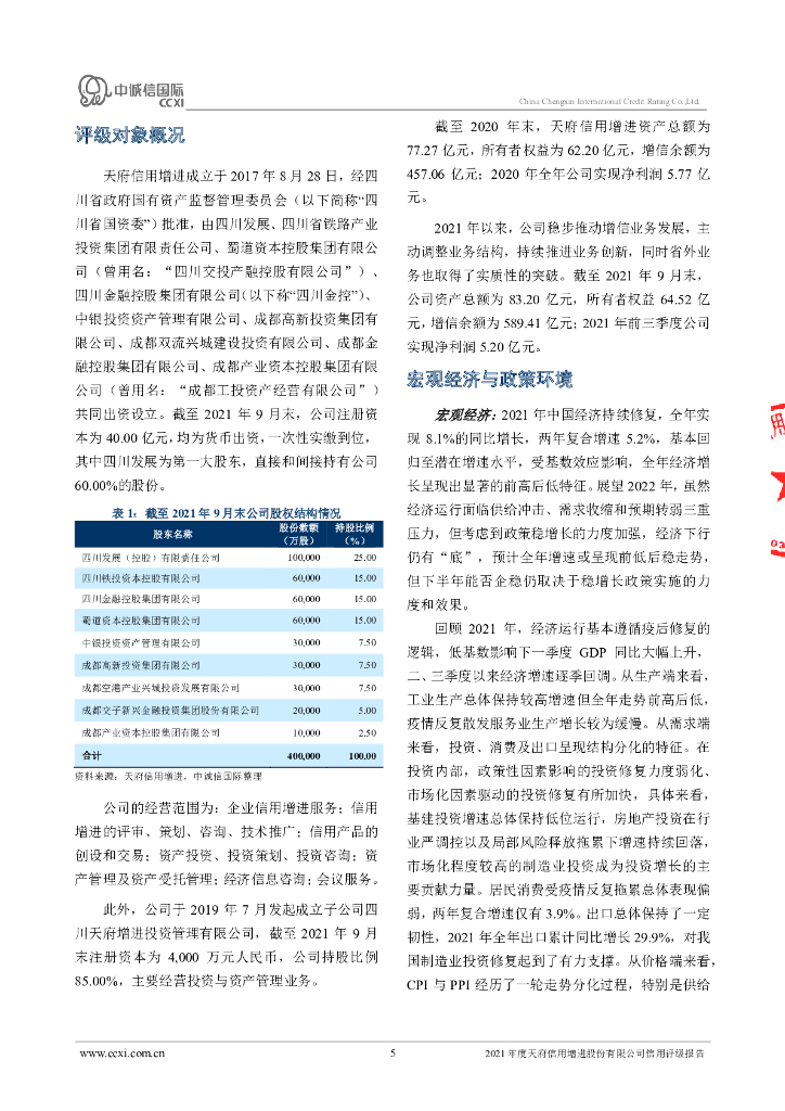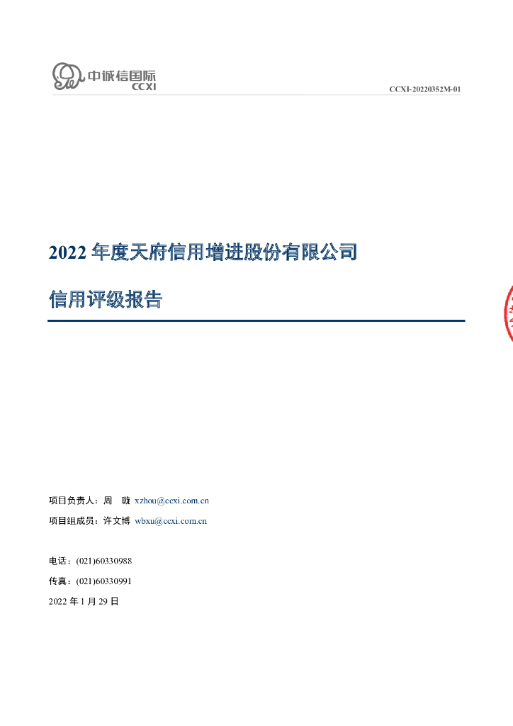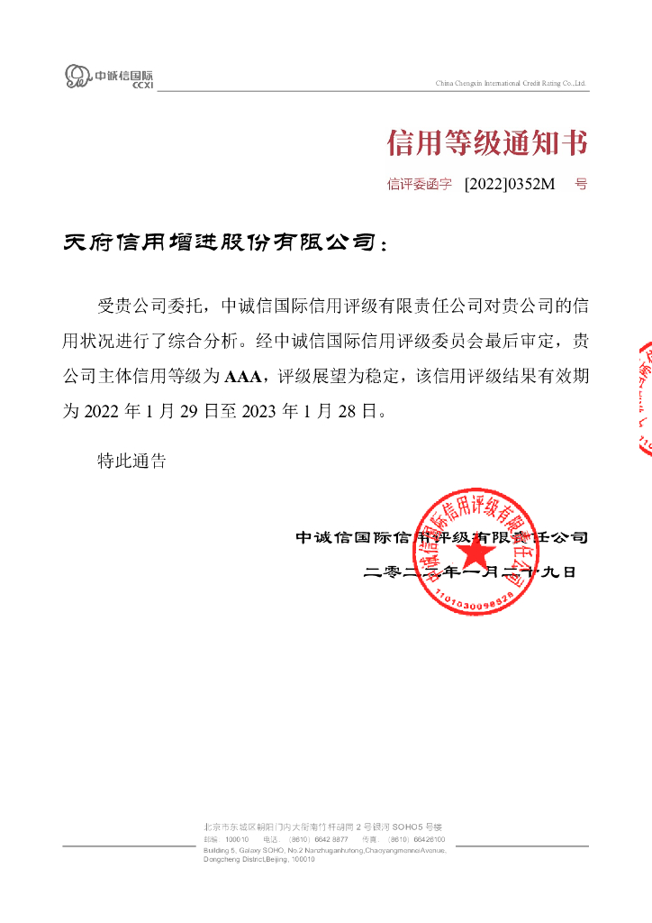 中诚信:天府信用增进股份有限公司2022年主体长期信用评级报告.pdf