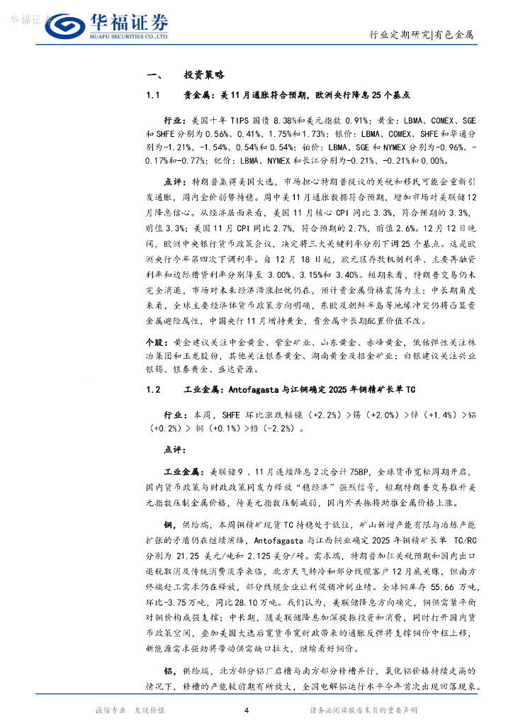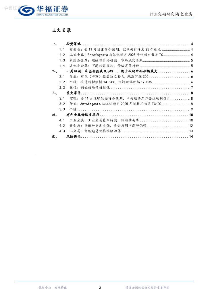 华福证券:有色金属行业周报:美11月通胀符合预期增加降息概率,欧洲央行降息25个基点.pdf