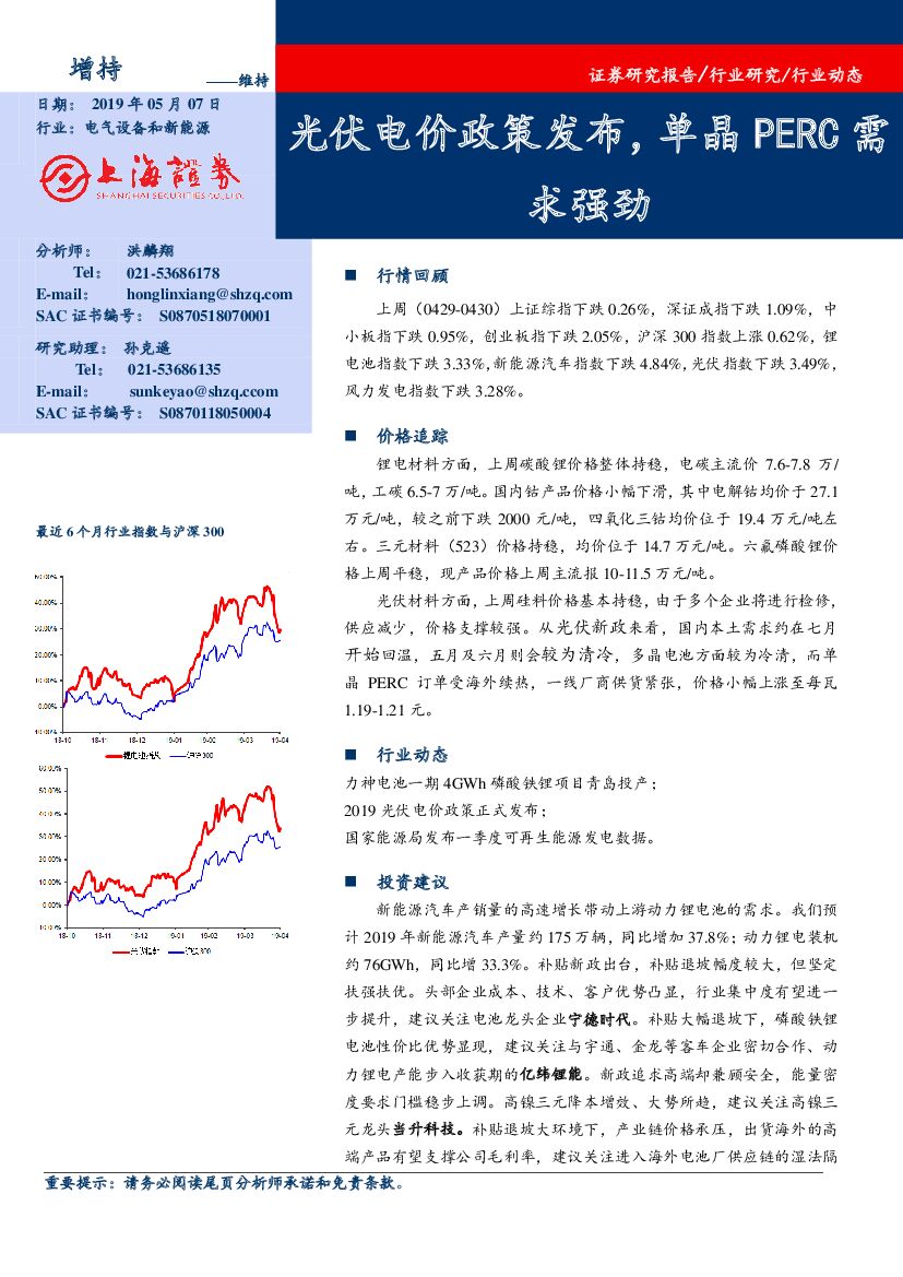 上海证券:电气设备和新能源行业动态:光伏电价政策发布,单晶PERC需求强劲.pdf