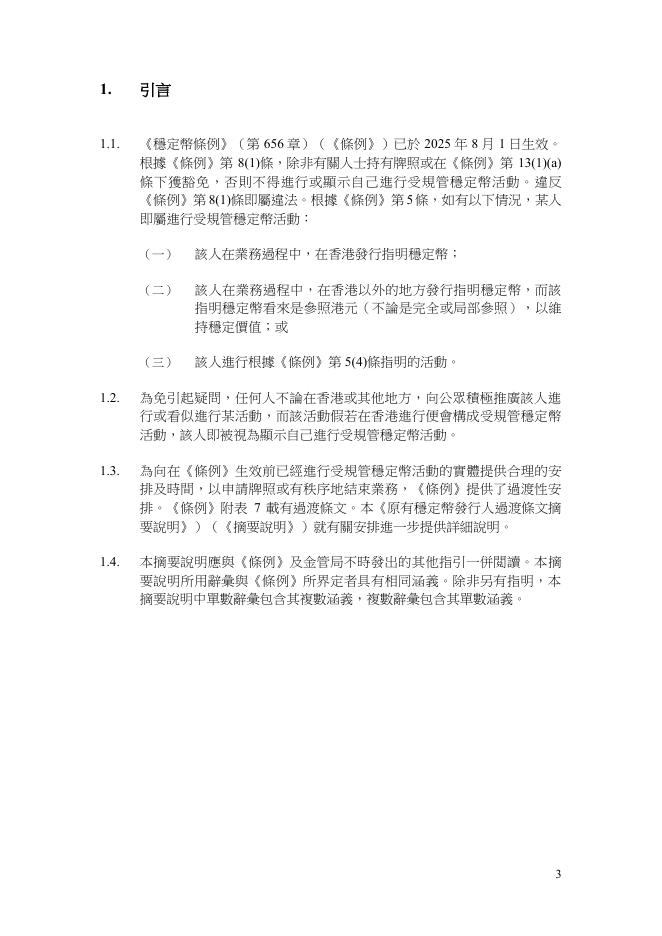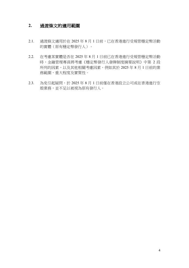 香港金管局:2025年《稳定币条例》原有稳定币发行人过渡条文摘要说明(繁体版).pdf