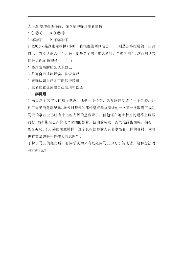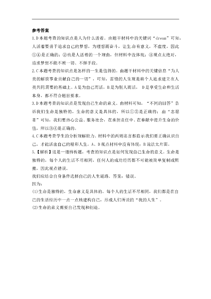 七年级上册 初中道德与法治4.10.1《感受生命的意义》基础训练.doc