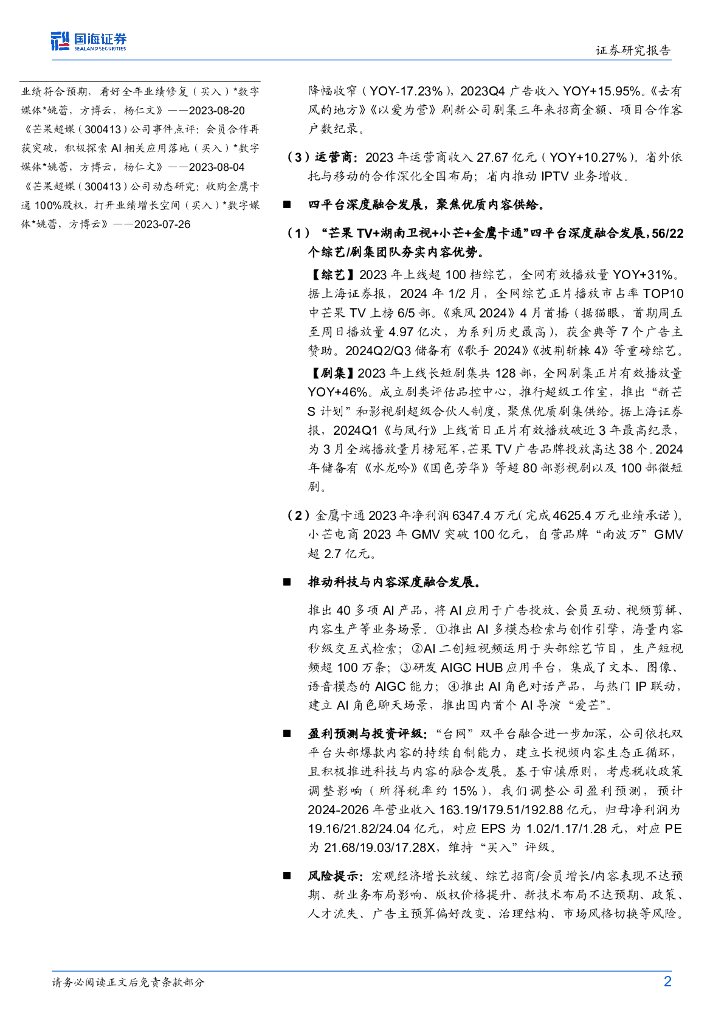 国海证券:芒果超媒(300413)-2023年及2024Q1业绩点评:重磅产品将陆续释放,科技与内容深度融合发展.pdf
