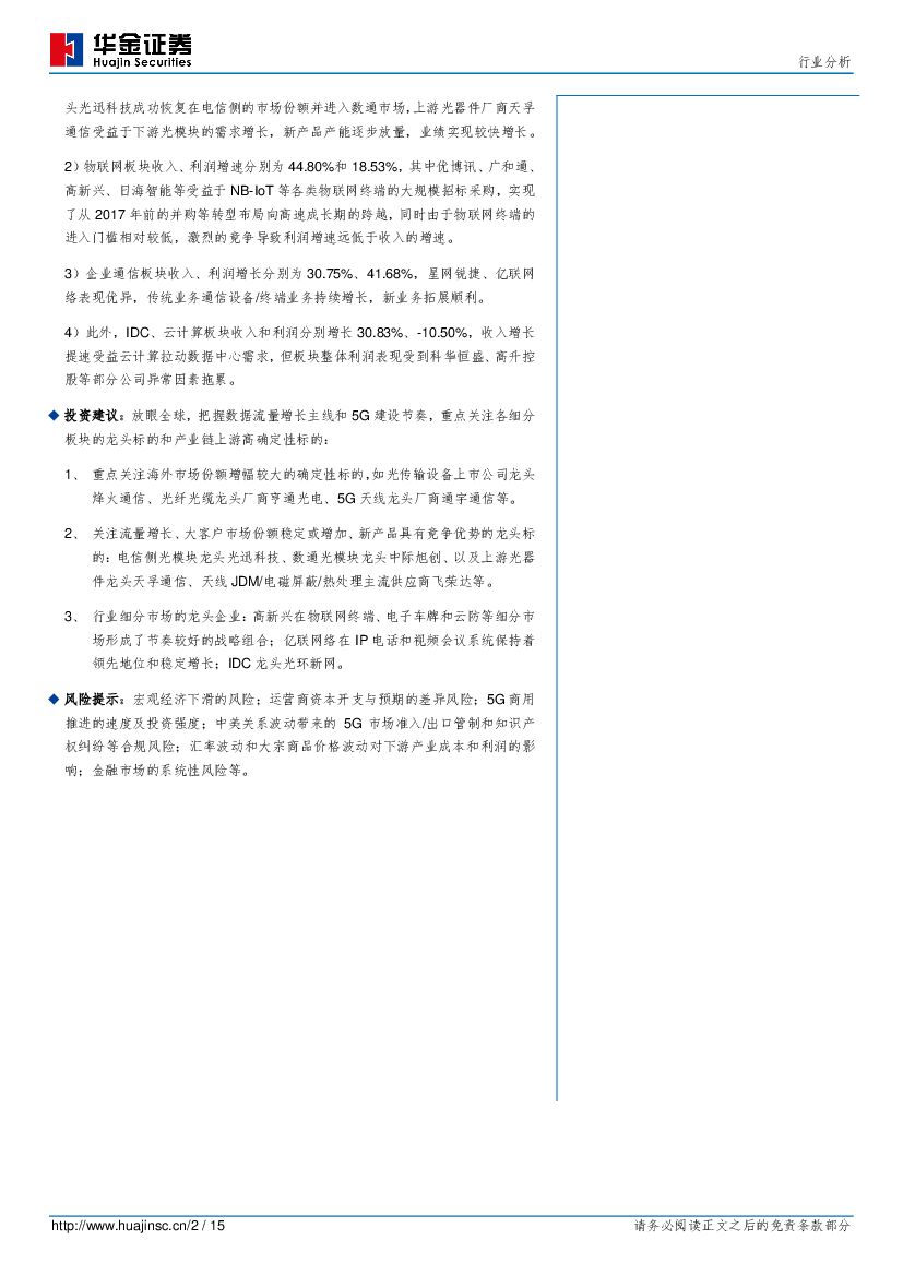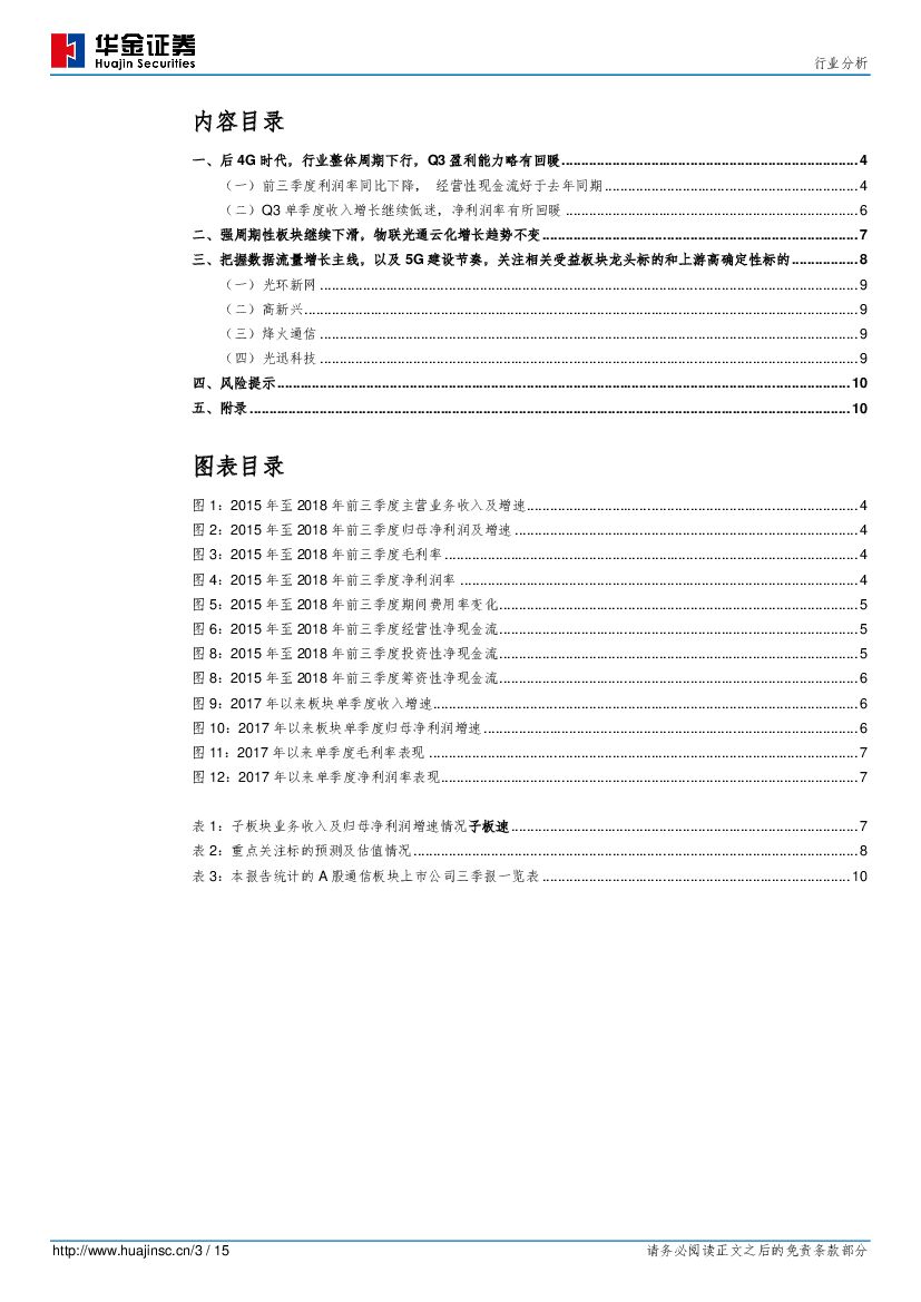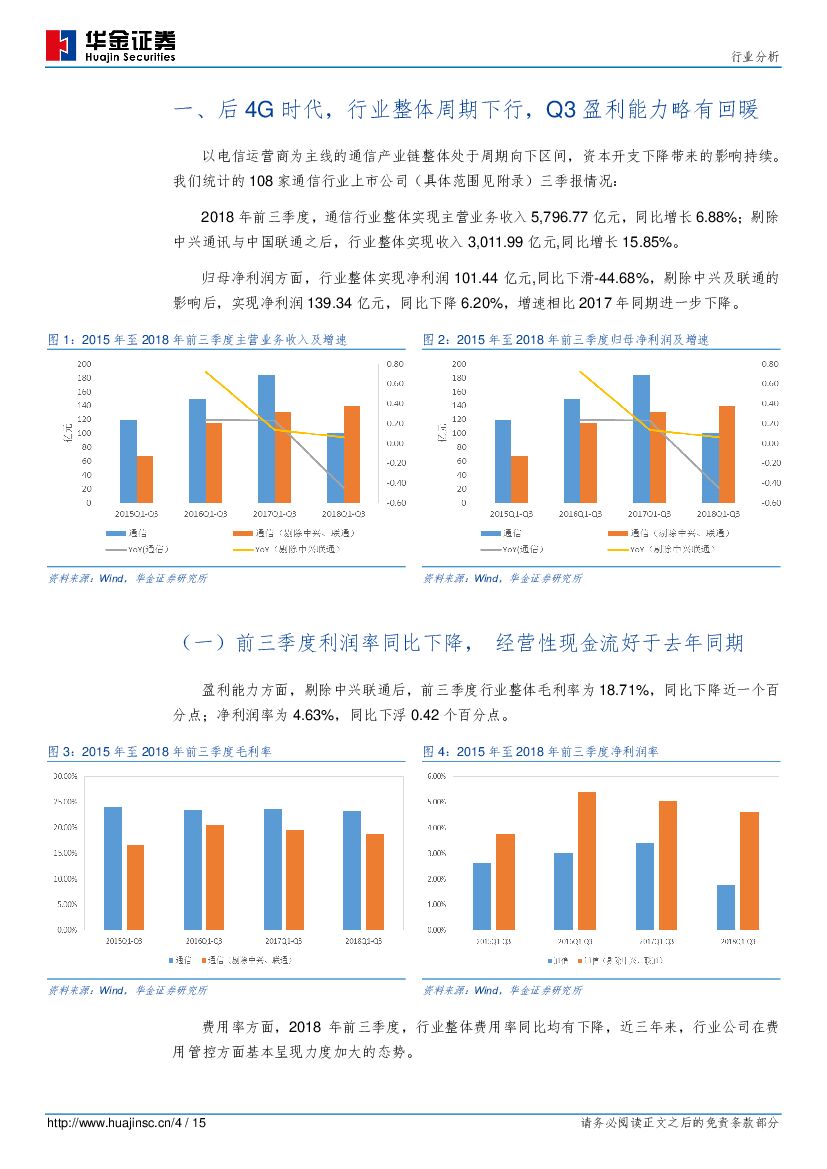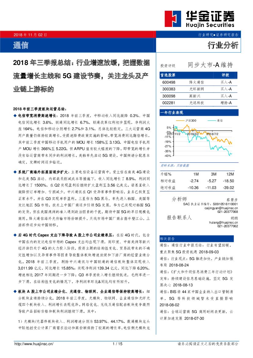 华金证券:通信行业分析2018年三季报总结:行业增速放缓,把握数据流量增长主线和5G建设节奏,关注龙头及产业链上游标的.pdf