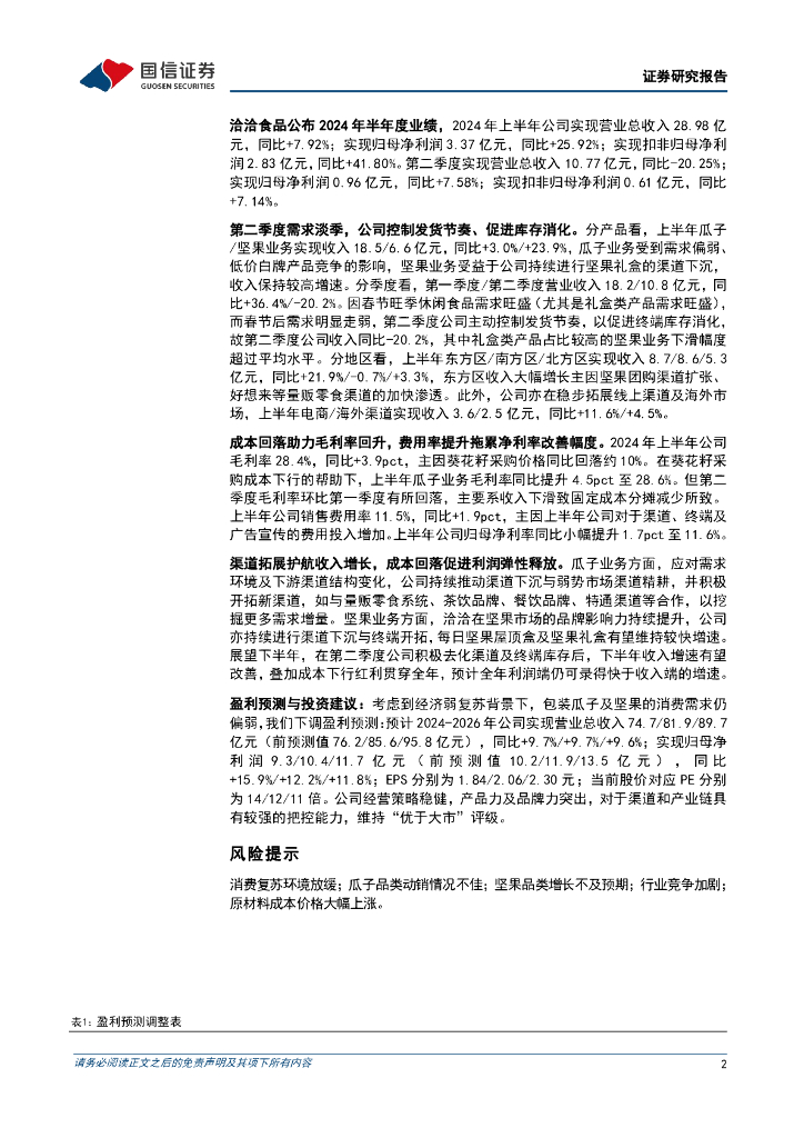 国信证券:洽洽食品(002557)-第二季度收入同比下滑,成本回落助盈利能力改善.pdf