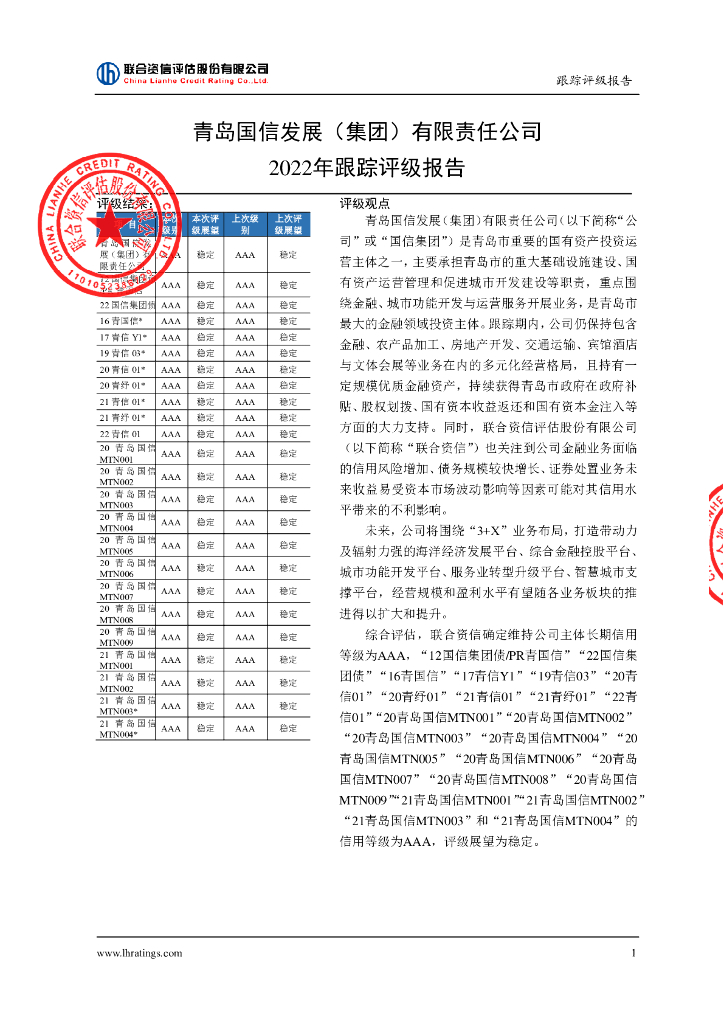 联合资信:青岛国信发展(集团)有限责任公司2022年跟踪评级报告.pdf