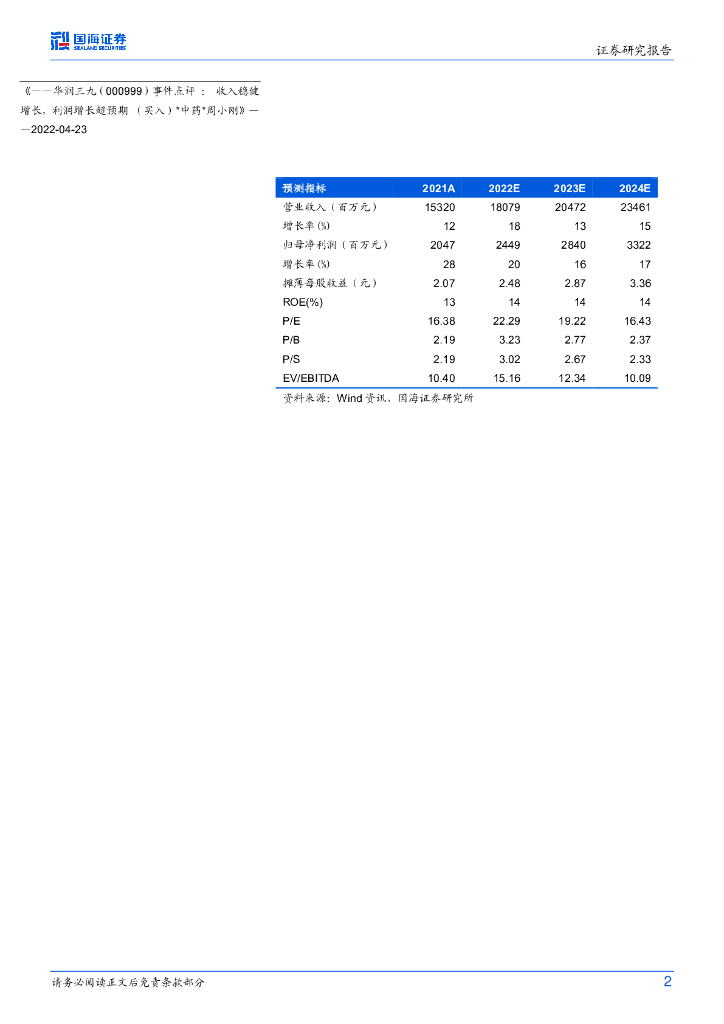 国海证券:华润三九(000999)-点评报告:全年收入和利润表现优秀,稳健发展可期.pdf