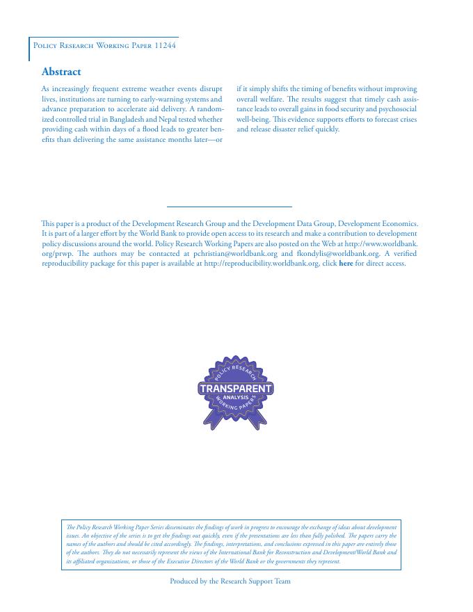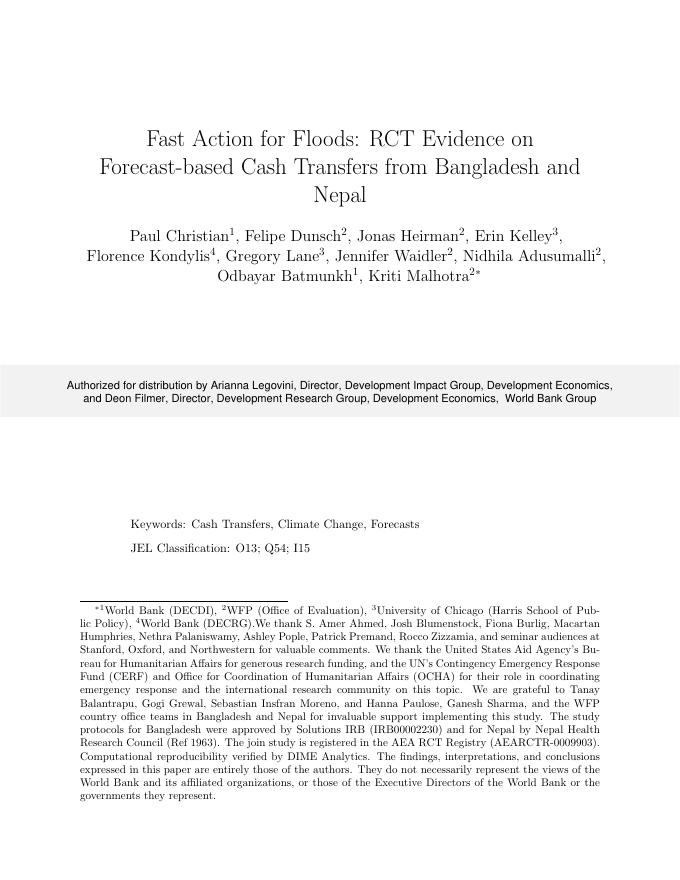 世界银行:洪水快速行动:孟加拉国和尼泊尔基于预测的现金转移的随机对照试验证据(英文版).pdf