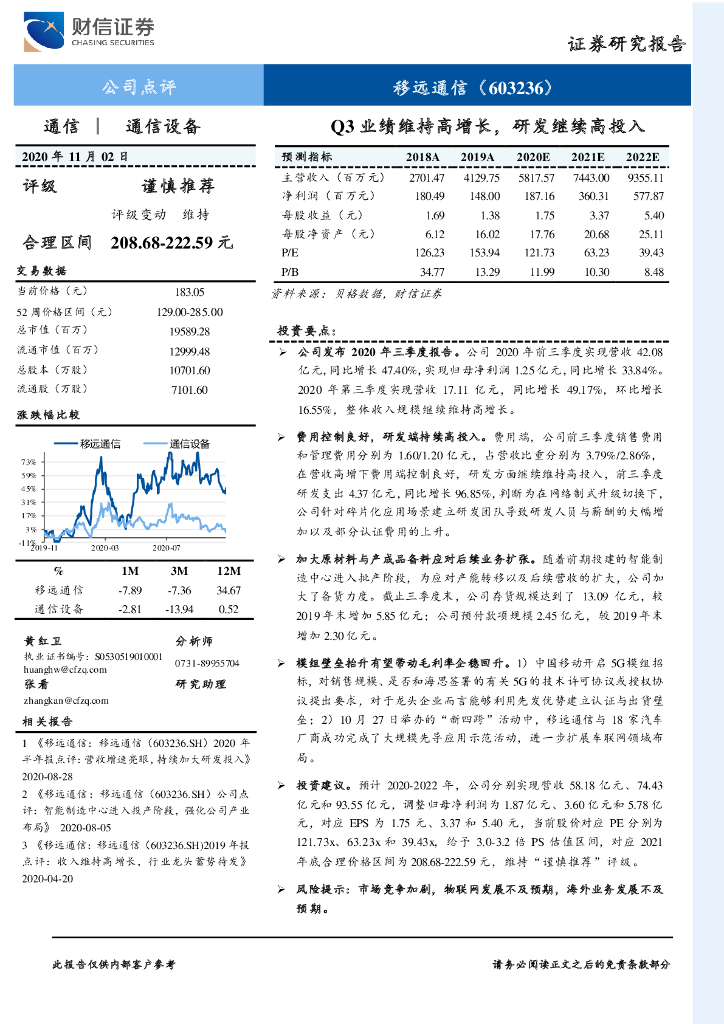 财信证券:移远通信(603236)-Q3业绩维持高增长,研发继续高投.pdf