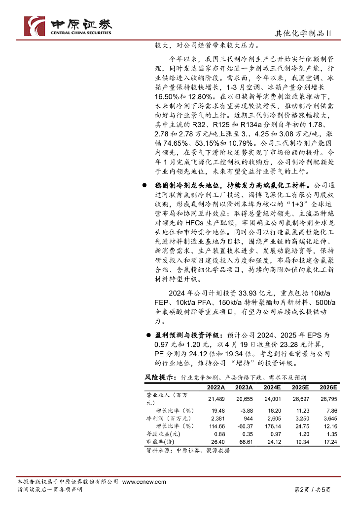 中原证券:巨化股份(600160)-年报点评:产品跌价压制2023年盈利,制冷剂景气上行提振未来业绩.pdf