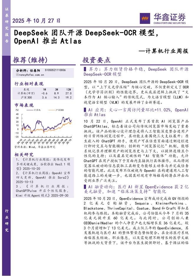 华鑫证券:计算机行业周报:DeepSeek团队开源DeepSeek-OCR模型,OpenAI推出Atlas.pdf