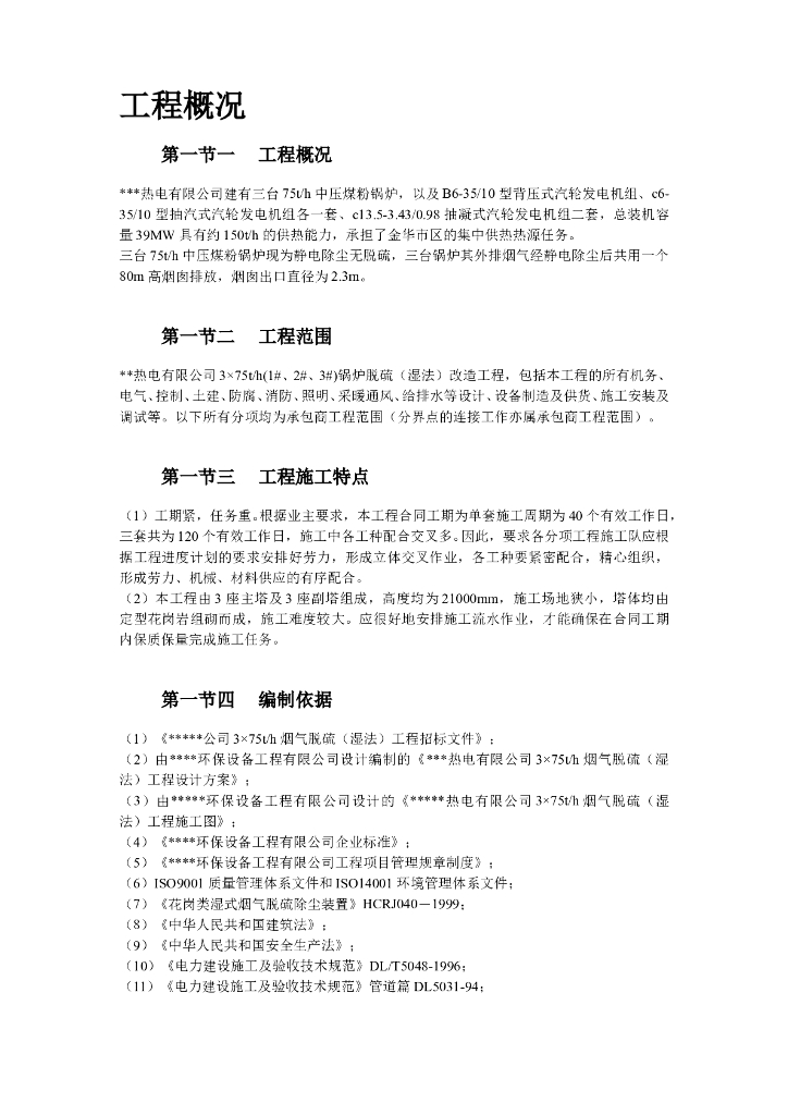 某热电厂锅炉脱硫湿法改造工程施工组织设计.doc