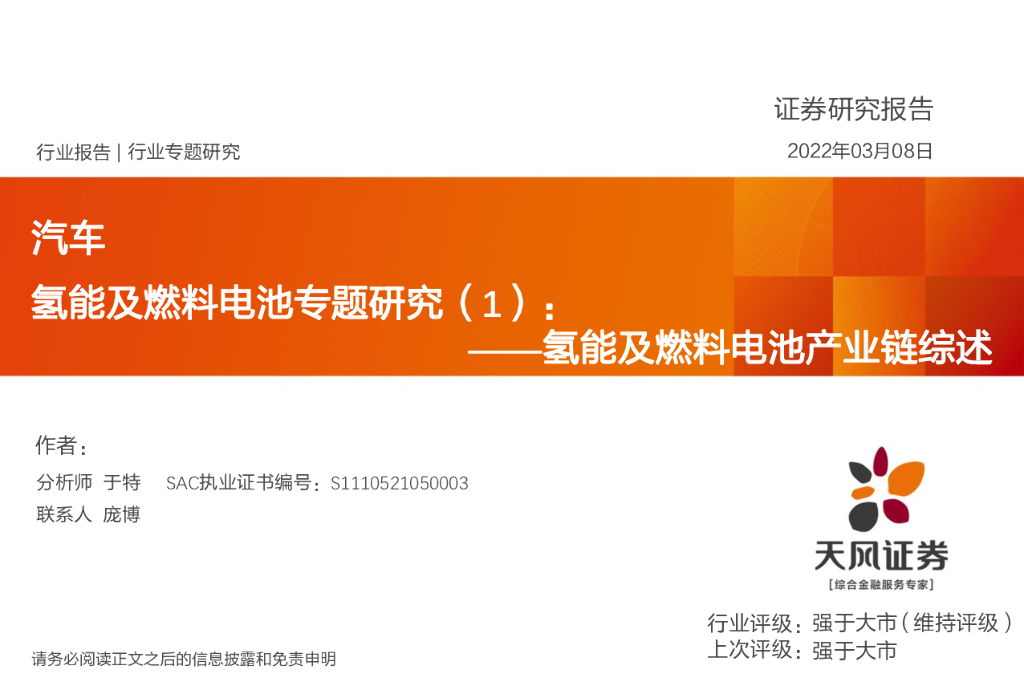 天风证券:氢能及燃料电池专题研究(1):氢能及燃料电池产业链综述.pdf