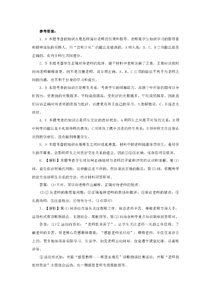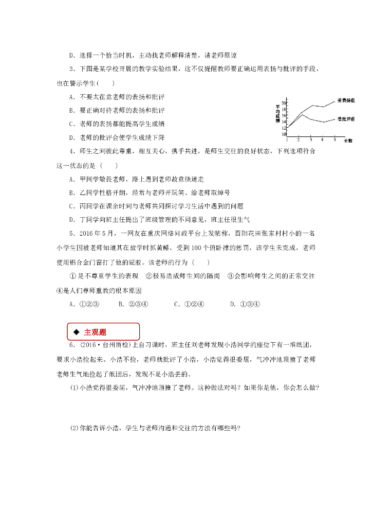 七年级上册 初中道德与法治6.2《师生交往》同步练习.doc