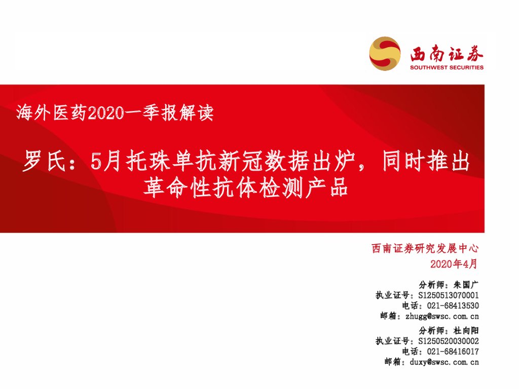 西南证券:海外医药2020一季报解读:罗氏:5月托珠单抗新冠数据出炉,同时推出革命性抗体检测产品.pdf