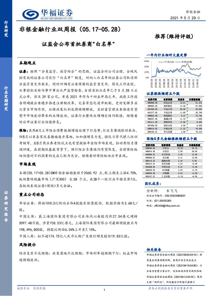 华福证券:非银金融行业双周报:证监会公布首批券商“白名单”.pdf