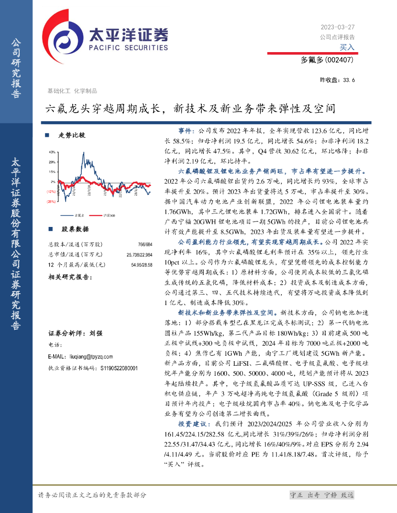 太平洋证券:多氟多(002407)-六氟龙头穿越周期成长,新技术及新业务带来弹性及空间.pdf