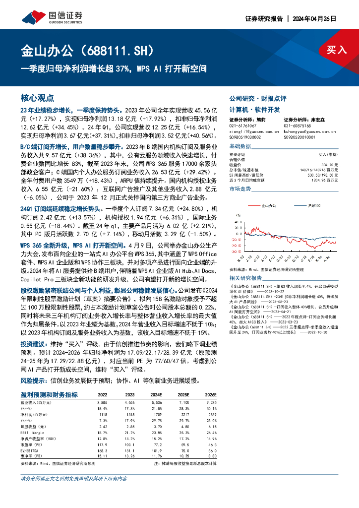 国信证券:金山办公(688111)-一季度归母净利润增长超37%,WPSAI打开新空间.pdf
