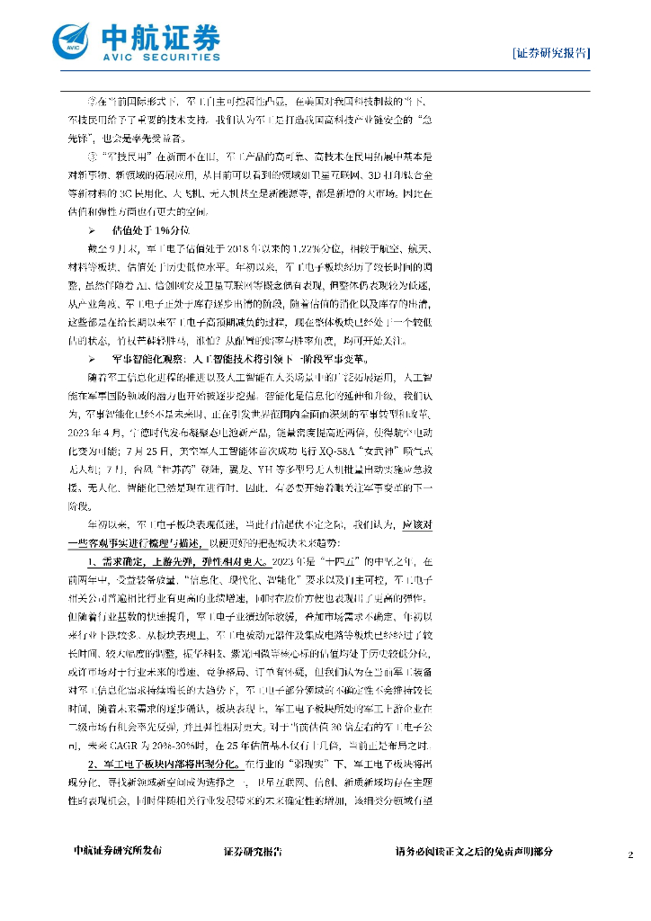 中航证券:国防军工:军工电子月报:估值1%分位,“大军工”市场开始发力.pdf