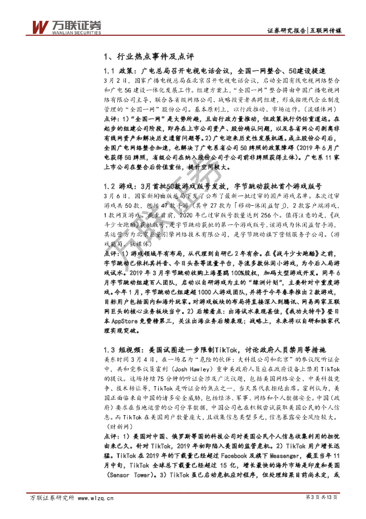 万联证券:互联网传媒行业周观点:广电一网整合启动,关注推进节奏&相关产业链.pdf