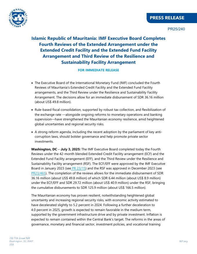 国际货币基金组织:2025年毛里塔尼亚伊斯兰共和国:根据扩展信贷机制和扩展基金机制安排进行的第四次审查报告(英文版).pdf