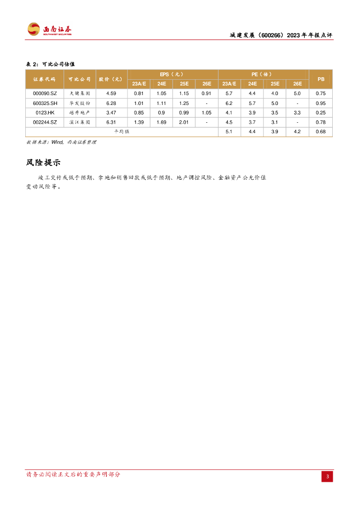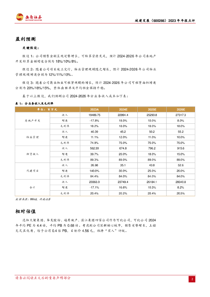 西南证券:城建发展(600266)-2023年年报点评:利润实现扭亏为盈,销售逆势增长.pdf
