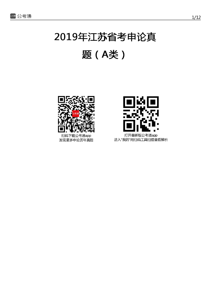 2019年江苏公务员考试申论真题及答案(A类).pdf