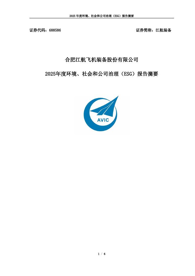 688586-江航装备:江航装备2025年度环境、社会和公司治理(ESG)报告摘要.pdf