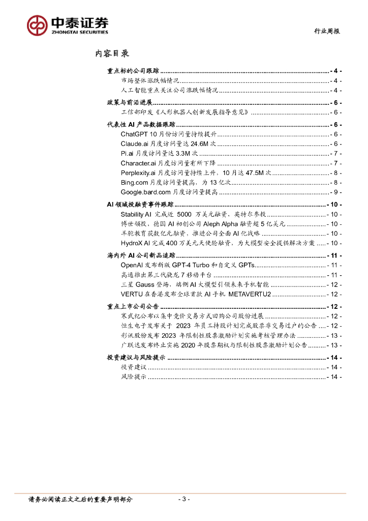 中泰证券:人工智能行业双周报:OpenAI召开开发者大会发布GPTs,高通推出骁龙7 Gen3移动平台.pdf