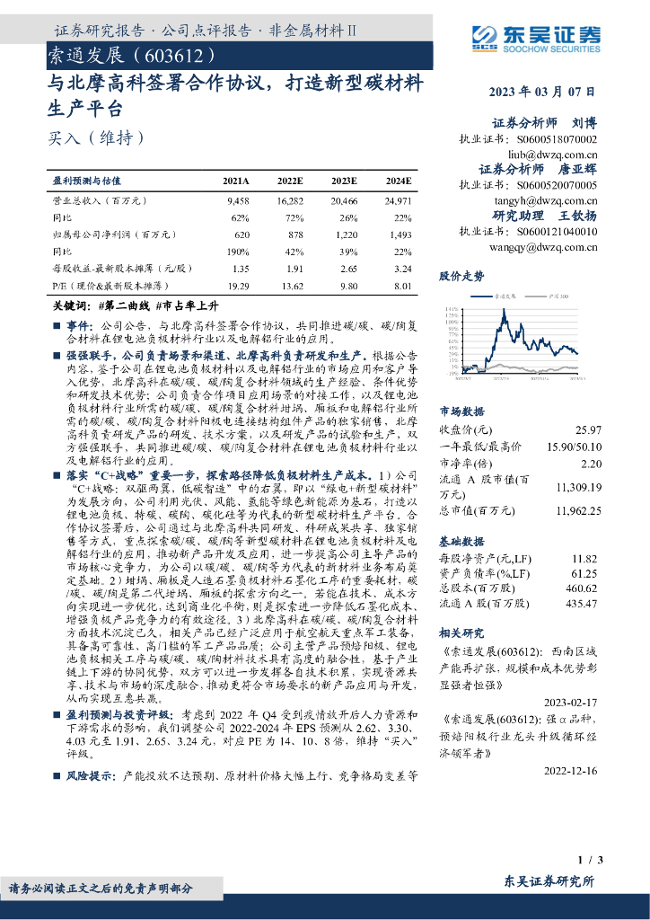 东吴证券:索通发展(603612)-与北摩高科签署合作协议,打造新型碳材料生产平台.pdf