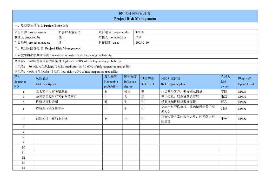 华为项目管理10大模板WORD版(可直接套用-非常实用).doc