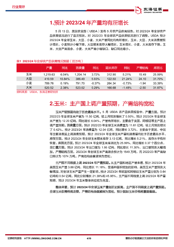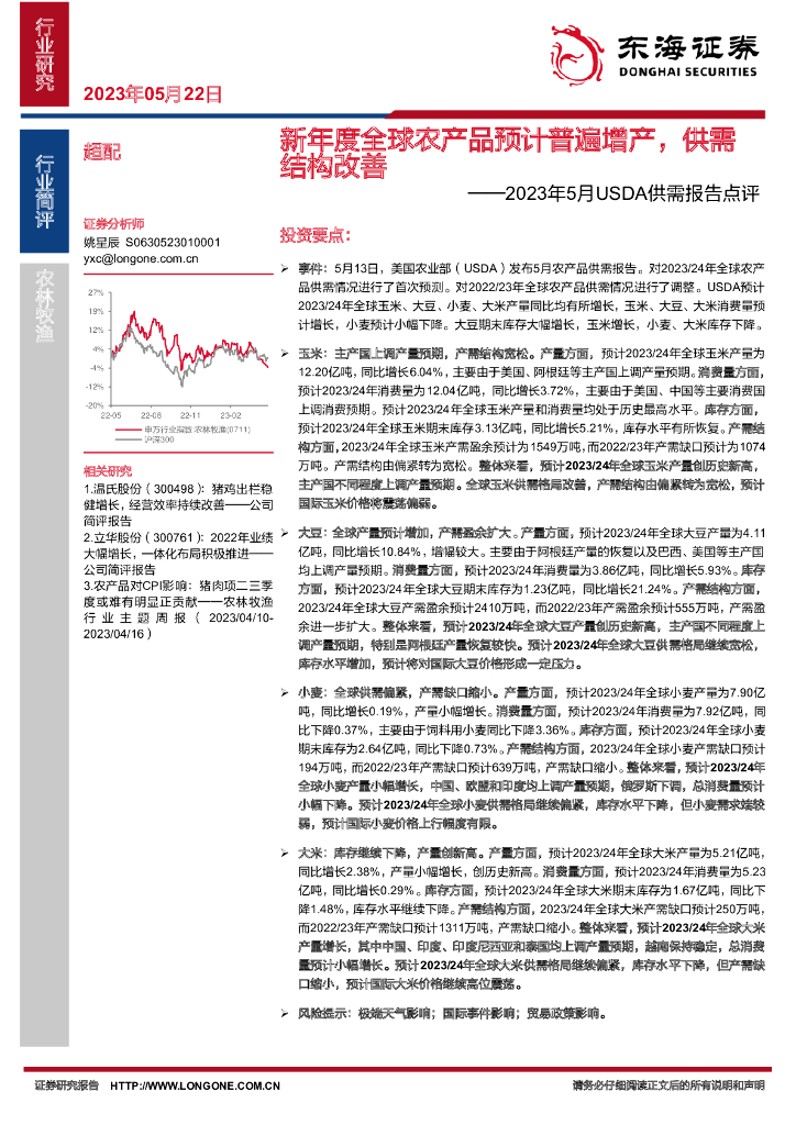 东海证券:农林牧渔:2023年5月USDA供需报告点评-新年度全球农产品预计普遍增产,供需结构改善.pdf