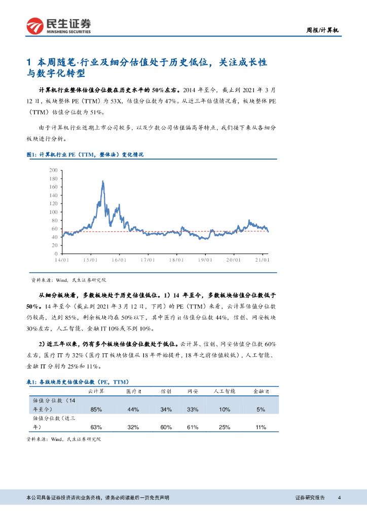 民生证券:计算机周报:板块估值处历史低位,关注成长性与数字化转型.pdf
