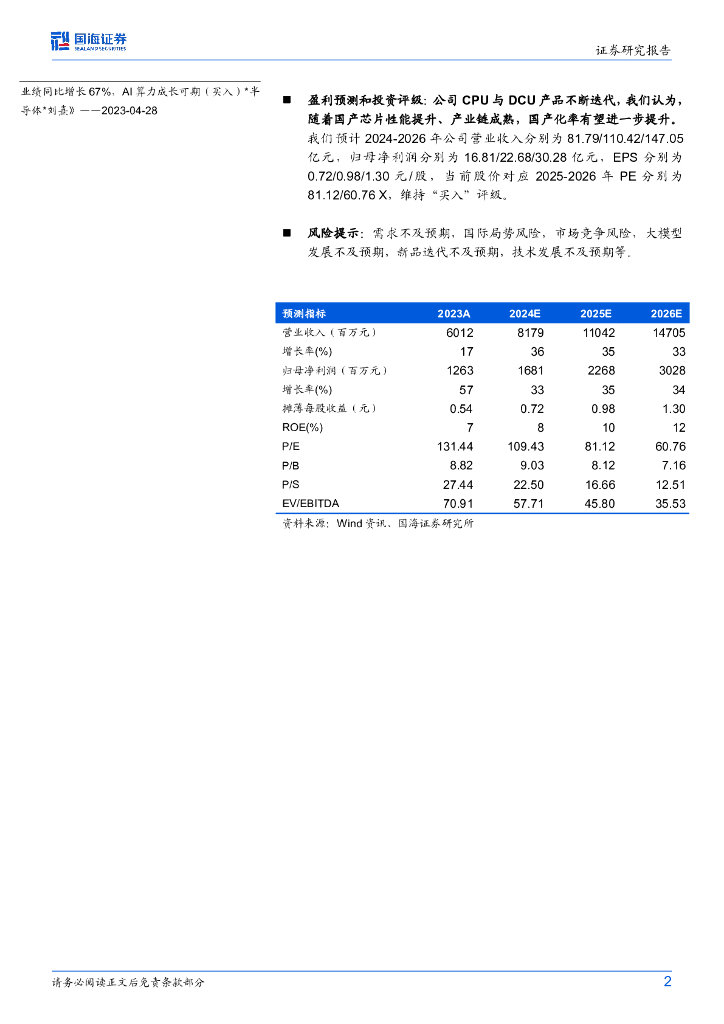 国海证券:海光信息(688041)-2024年一季报点评:2024Q1业绩持续高增,国产算力领军者受益政策推动.pdf