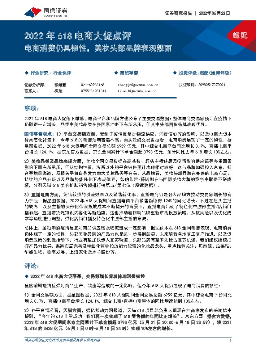 国信证券:商贸零售:2022年618电商大促点评-电商消费仍具韧性,美妆头部品牌表现靓丽.pdf