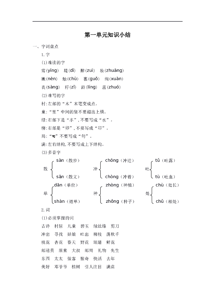统编语文二年级下册第一单元知识小结.doc
