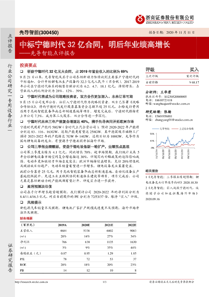 浙商证券:先导智能点评报告:中标宁德时代32亿合同,明后年业绩高增长.pdf