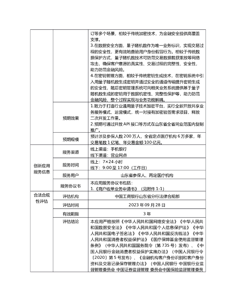 金融科技创新应用声明书:基于量子随机数的医保支付结算服务.doc
