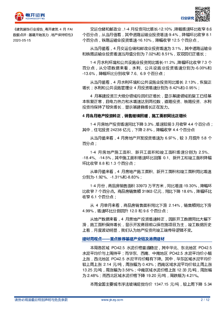 粤开证券:粤开建筑建材周观点:基建稳增长有望持续验证;继续关注竣工端.pdf