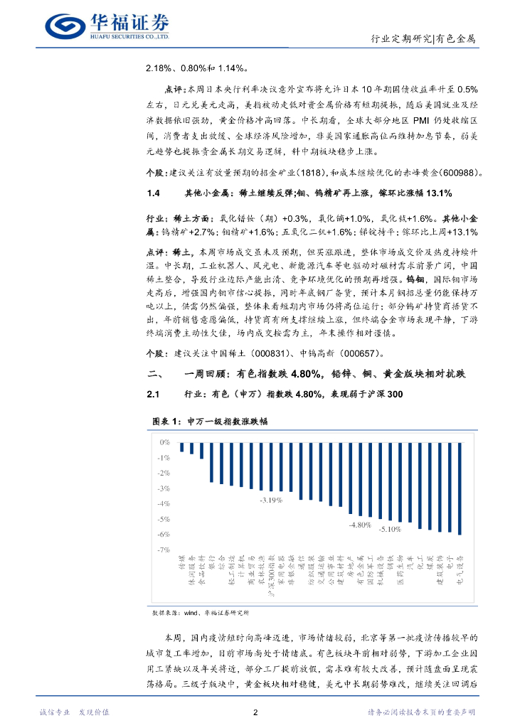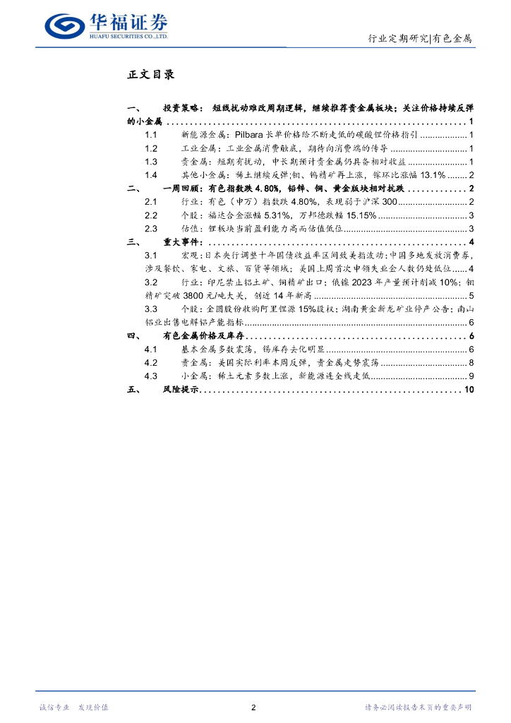 华福证券:有色金属行业周报:短线扰动难改周期逻辑,继续推荐贵金属板块;关注价格持续反弹的小金属.pdf